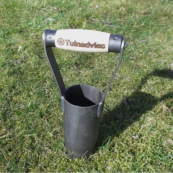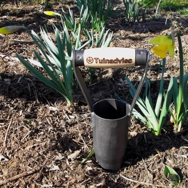 Deze duurzame bollenplanter is gemaakt uit hoogwaardig gesmeed staal en heeft een diameter van 60 mm en schachtdiepte van 145 mm. Het handvat is gemaakt uit essenhout en is gebrandmerkt met ons TUINADVIES – logo. Voortaan bollen planten in perk en gazon met deze kwalitatieve planter.