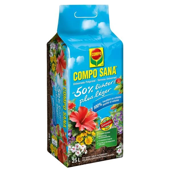 Deze kwalitatieve Compo Sana ca. 50% lichtere potgrond is gebruiksklaar en is door zijn universeel karakter prima geschikt voor het planten en verpotten van diverse planten.