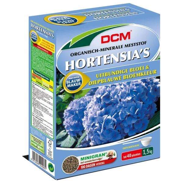 Deze meststof is speciaal voor de blauwe hortensia met apart bijgesloten echte aluin voor de blauwkleuring van de bloemen.