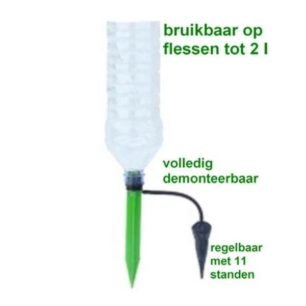 Dit handige druppelbevloeiingssysteem is te gebruiken op petflessen met een inhoud tot 2 liter.