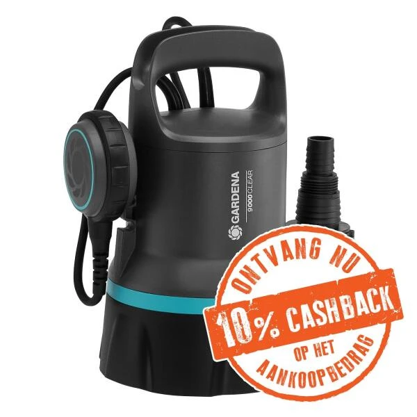 De hoogwaardige en energiezuinige dompelpomp 9000 van Gardena heeft een laag energieverbruik en is niet alleen krachtig maar ook zeer efficiënt. De motor van de dompelpomp heeft een vermogen van 300 W. Bij een maximumdruk van 0,6 bar en een opvoerhoogte van 6 m kan maximaal 9000 liter water per uur worden gepompt met een vlakke aanzuiging tot 2 mm.