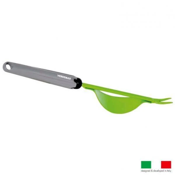 Dit gereedschap is special geschikt om onkruid met een penwortel uit te steken. Met de bolle kant op het gazon gedrukt, kan de wortel zonder veel inspanning worden opgewipt door het handvat naar beneden te drukken.