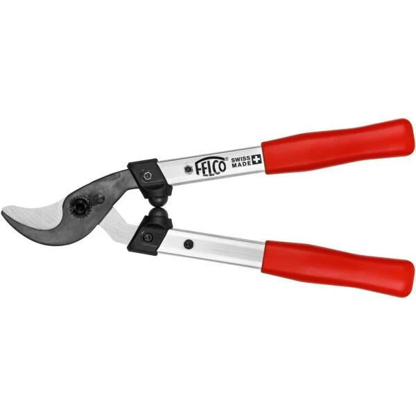 Deze degelijke schaar beschikt over lichtgewicht aluminium handgrepen met antislip handvatten. De gekromde snijkop zorgt voor het snoeigemak en een nauwkeurige duidelijke snede. Handen en polsen worden gespaard dankzij de schokdempers.