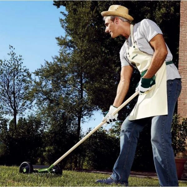 De verticuteerhark op wielen heeft 11 halvemaanvormige messen die door de graszode en graswortels heen snijden. Twee duurzame kunststof wielen begeleiden de hark en zorgen ervoor dat je altijd op dezelfde diepte snijdt, bovendien vergemakkelijken zij het werk. De verticuteerhark wordt met trekkende bewegingen gebruikt en zorgt ervoor dat in één handeling zowel de groei van de graszode wordt gestimuleerd als de afdichtende viltlaag wordt verwijderd.