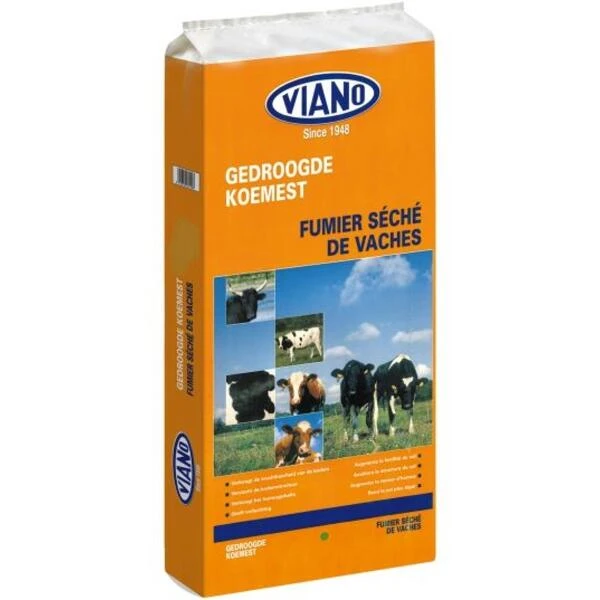 Gedroogde Viano koemestkorrels als natuurlijke bodemverbeteraar, verbetert de bodemstructuur door de verhoging van het humusgehalte.