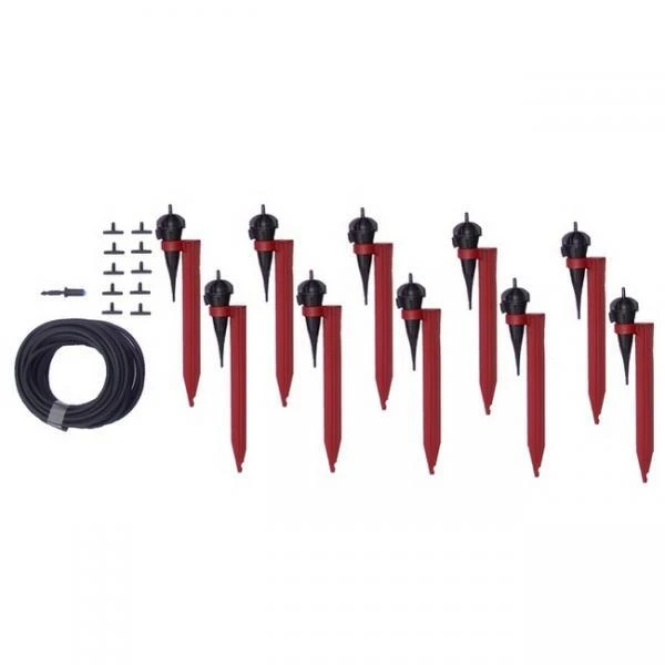 Op de waterdarm sluit je zelf de regelbare druppelaars aan op de gewenste afstand. Elke druppelaar is afzonderlijk regelbaar volgens de waterbehoefte van de plant en heeft maar liefst 11 standen.