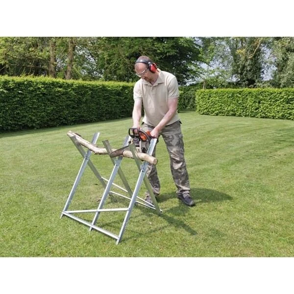 Zeer duurzame gegalvaniseerde zaagbok met vertanding om het hout stevig vast te houden tijdens het zagen. Een onmisbaar hulpmiddel om snel en vooral veilig je brandhout tot Ć 25 cm te verwerken met de kettingzaag.